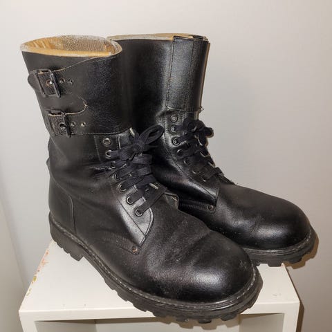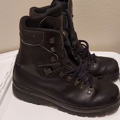 Haix nahkamaihari teräskärjellä. Ollut mökillä rymyämiskenkinä. Kärjistä nahka ottanut osumaa