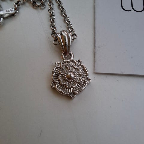 Riipuksen koko: 15 x 21mm, ketju 45/50cm Lumoava-korut ovat aitoa suomalaista käsityötä, ja ne valmistetaan Kuopiossa. Koru on uusi ja sen hinta liikkeessä on 109eur. Nyt todella edullisesti posteineen kirjelähetyksenä vain 40eur.