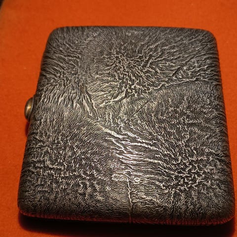 Hopeinen savukekotelo 1934 v 813H, 90,2 grammaa, mitat 9 cm x 8 cm