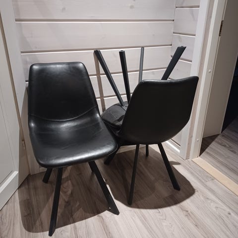 Kaksi Ikean hyväkuntoista nahkatuolia. Toisessa huomasin minimaalista käytönjälkeä kuvatessa (pari melko huomaamatonta naarmua). Ollut käytössä pari vuotta ja sen jälkeen sisävarastossa. Vain nouto (Hirsimäki Hml).