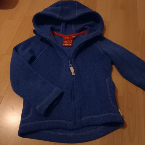 Reiman fleecetakki, lähikuvassa näkyy hyvin materiaali. Kokolappu leikattu, mutta muihin reiman vaatteisiin verraten arvioisin kooksi 104/110.