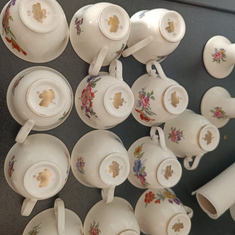 Myyn kuvanmukaiset arabian kulta-aika lautaset 6kpl.Reunoissa on kultainen raita. 2kpl matalaa ruokalautasta halkaisija noin 26 cm,2kpl alkuruokalautasta halkaisija noin 19cm ja 2kpl syvää lautasta halkaisija noin 19 cm. Ovat siis käyttämättömiä ja uudenveroisia.