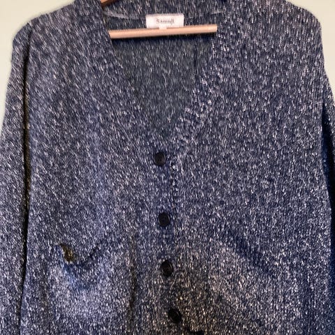Samuji ohut neuletakki, koko vastaa XS, materiaali muistaakseni silkkiä ja pellavaa (lappu leikattu pois). Ihana ohut kesään, harmillisesti itselleni liian pieni ja kaapissa odotellut.