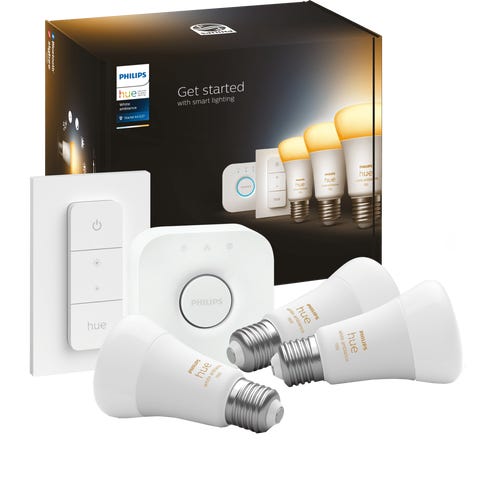Tämän aloituspakkauksen avulla aloitat Philips Hue -järjestelmän rakentamisen. Pakkaus sisältää kolme E27-älylamppua, jotka tuottavat yli 16 miljoonaa värisävyä ja säädettävän valkoisen valon, sekä Hue Bridgen.