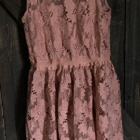 Valkoinen lyhyt pitsimekko. Pitsineulos 100 % puuvillaa. Alusmekko 100 % polyesteria. Kauniit levenevät hihat. Mukava päällä.
