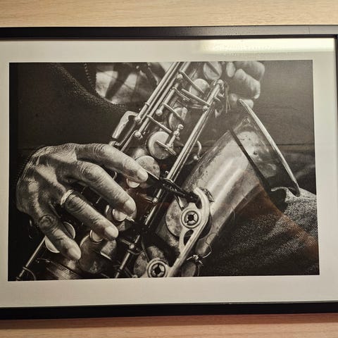 Kaksi teemaa seinälaudoissa, joissa on 'hyvää huomenta' ja kitara.