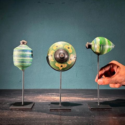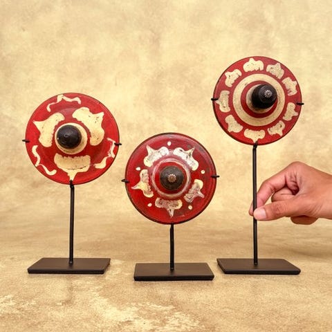Kolmen puisen pyörivän lelun setti Lombokilta.