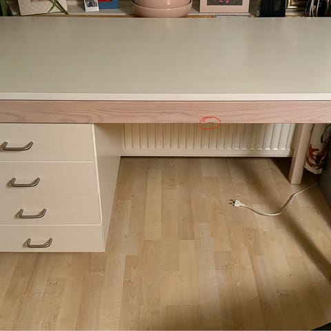 Pöydässä on kaksi vetolaatikkoa säilytystilaa varten. Vetolaatikoissa ruuvit, etteivät laatikot vahingossa tipu.