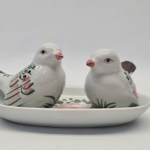 🐦 Kauniit hopeoidut metalliset ajan patimoimat lintuaiheiset pienet sirottimet alkuperäisessä korissa. Lintujen alla muovitulpat ja päällä reiät. Sopii esimerkiksi suolan ja pippurin sirottimiksi, tai vaikkapa koriste-esineeksi!
