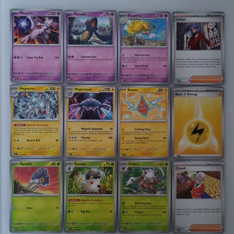 Charizard peltiboksi, koodikortteja, keräilykortteja sekä Mewtwo pinssi.