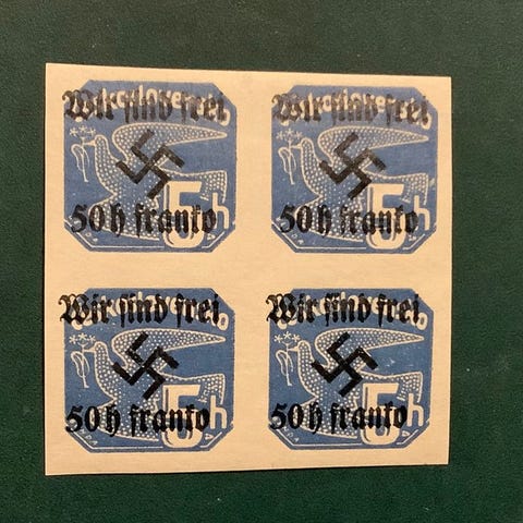 Bohemia ja Moravia 1938 - Rumberg: 4 leimaa, joissa lukee 'olemme vapaita'. -