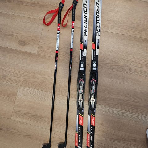 Myydään perinteiset sukset 150cm ja sauvat 115 cm