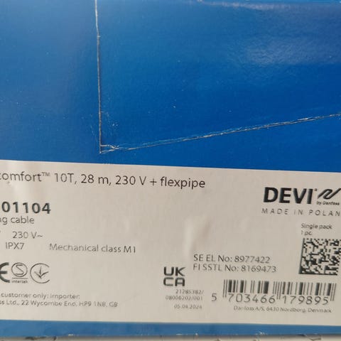 1500w kokonaistehon 125m pitkä vatti lattialämmityskaapelipaketti myyntiin. Hinta per kpl, näitä 3kpl