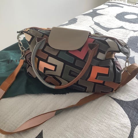 Tummansininen käsilaukku, nahkaa. Ostettu Italiasta, ei juuri käytetty. Sisältä täysin ehjä ja siisti. Mitat: korkeus 30, leveys 41 cm. Hinta 20€ plus lähetyskulut.