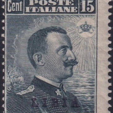 Italian Libya 1916 - Michetti 20 c. su 15 c. gr. nero Sovr. Azzurro Nero Sass