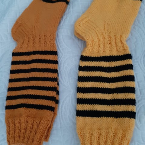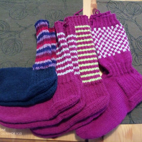 Pitkä vartiset sukat on kokoa 40-41. Hinta 35€. Lanka on 7-veljestä ja vahvistetut kantapäät.