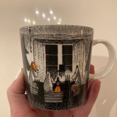 Myydään Arabia muumimuki hiihtäen kera herra virkkunen.