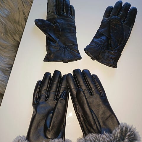 Ei oo montaa kertaa käytetty. Karvavuori. Ja mustat on, valo ehkä vähän vääristää väriä. Mitat 10x23cm. Postikulut lisään jos lähetän.