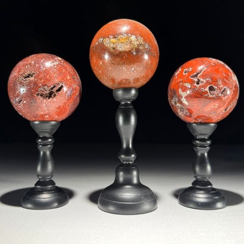 Lumoava onyx freeform ja pallo räätälöidyllä jalustalla.