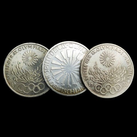 Saksa. Silver 4x 5 Deutsche Mark Coins (44,60gr) 1974/1975/1977 ()