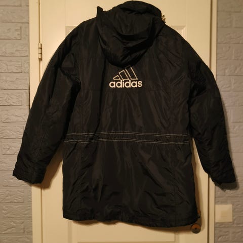 Hyväkuntoinen Adidas toppatakki, koko S mutta mielestäni erittäin suuri mitoitus, olen 182cm pitkä mutta takki on silti reilun kokoinen.