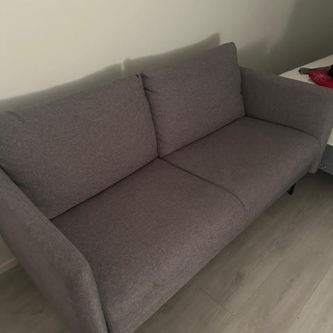 Kahden istuttava tumman harmaa sohva. Askosta ostettu ja vähässä käytössä ollut.
