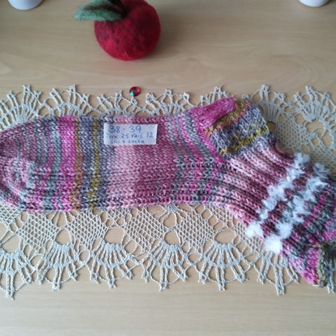 Käsinneulotut naisten moniväriset villasukat Step 6 langasta 75% villaa ja 25% polyamidia.