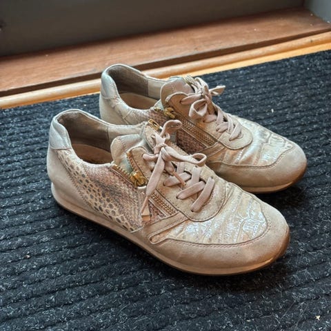 Myydään hyvin vähän käytetyt kauniit Gaborin nuden väriset, tennarit/kävelykengät. Koko 5, vastaa kokoa 38.