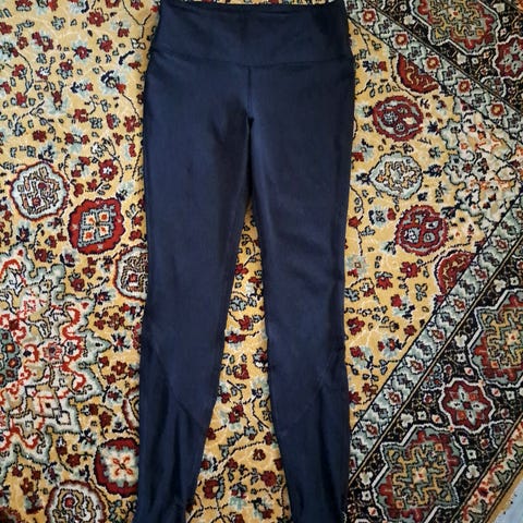 Ainoastaan pari kertaa käytetyt Superdry-merkkiset leggingssit koossa 42. Hieman pientä kokoa, itse käytän yleensä housuissa kokoa 40 tai L ja nämä ovat minulle sopivat. Housut ovat mukavan jämäkkää kangasta ja niissä on hienot mesh-yksityiskohdat sekä hieman kimalteleva teksti pohkeen kohdalla. Pohkeen teksti on hieman halkeillut, mutta sitä ei onneksi huomaa muuten kuin läheltä katsottaessa. Muuten legginssit ovat hyvässä kunnossa.