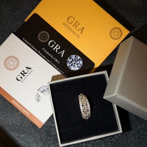 Uusi 2.00ct Diamond Moissanite hopeasormus todistuksella, säädettävä koko