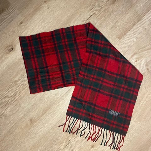 100% lambswool, klassinen ruutukuosi. Huivi on pidetty ja siisti, ei tahroja tai nukkaa.