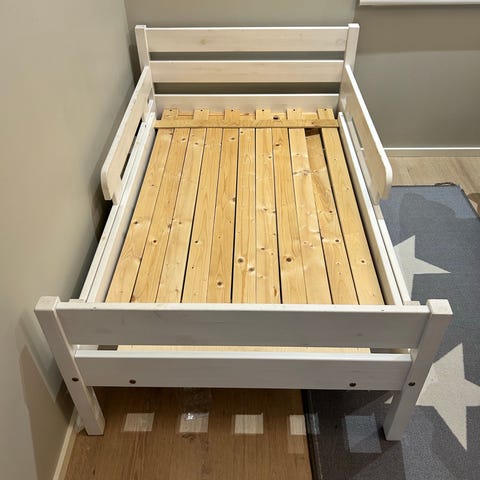 Siistikuntoinen juniorisänky, tosin pientä käytönjälkeä mm maalinkulumaa muutamassa kohdin ja pieni tussipiirros.. sivulaita jälkiasennettuna, joka helppo ottaa pois halutessaan.