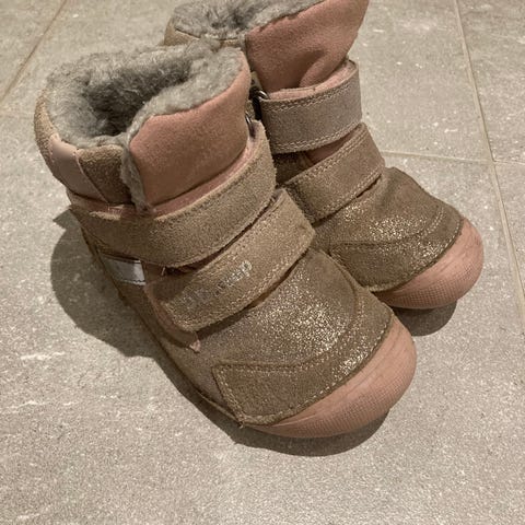 Kevyttoppatakki 110 (reiluhko), pipo (110-128), vikingit 28 ja DD step vuorelliset kengät 28. Vikingit vähän reilummat kuin nuo talvikengät. Tarrat pysyy hyvin kiinni kummassakin.