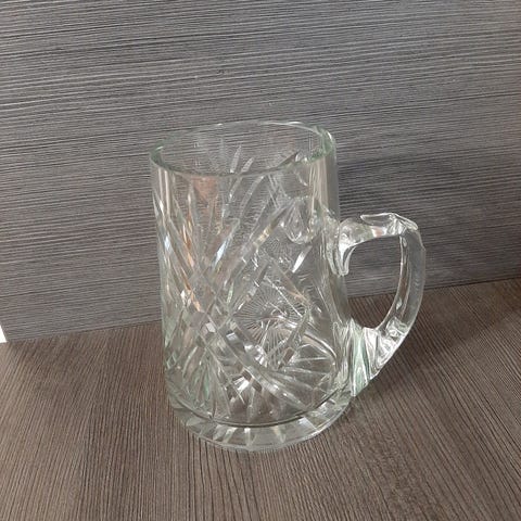 Kaksi kaunista kristallituoppia. Tukevat. Korkeus 14 cm, vetoisuus 0,5 l