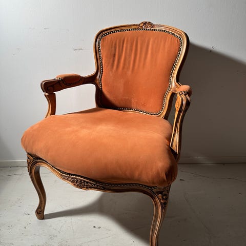 Napoleon III tyylinen divaani ja nojatuoli. Divaanissa korkea selkänoja joten siinä on ihana loikoilla. Melko pieniä kooltaan joten mahtuu pienempäänkin olohuoneeseen tai makkariin.