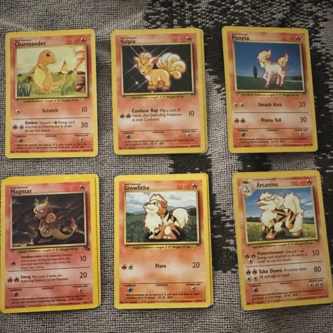 Myydään lapsuudessa ennen vuosituhannen vaihdetta kerättyjä vintage Pokémon-kortteja base setistä, junglesta, fossilista ja team rocketista. Holokortteja Ninetales x2, Flareon, Jolteon, Magneton x2. Kaikki kortit huolella säilytetty muovitaskuissa kansion sisällä. Kysellä voi ja kuvia saa lisää pyydettäessä. Myydään tarjousten mukaan.