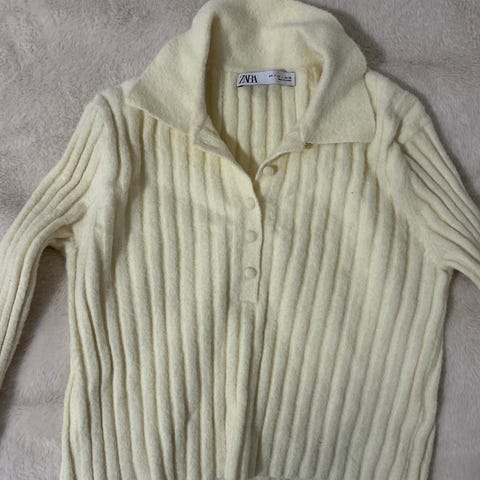 H&M neulepusero beige värissä, naisten koko S. Materiaalina puuvilla. Puserossa on vetoketjullinen kaulus ja se on valmistettu neulottuna materiaalina.