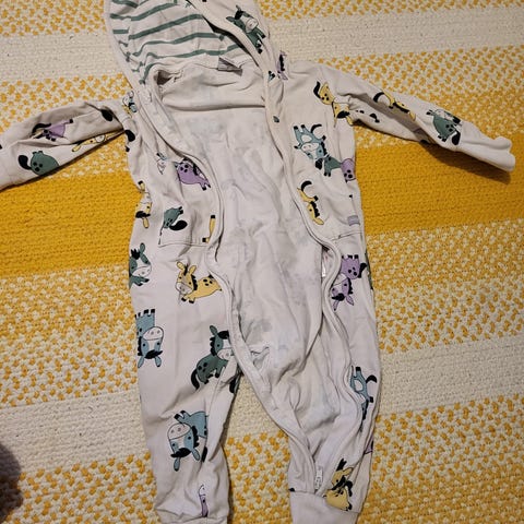 Pop&Co Helsingin värikäs lyhythihainen ja -lahkeinen haalari. Koko 68 cm. Nepparit kaula-aukossa ja haaroissa. Erinomaisessa kunnossa.