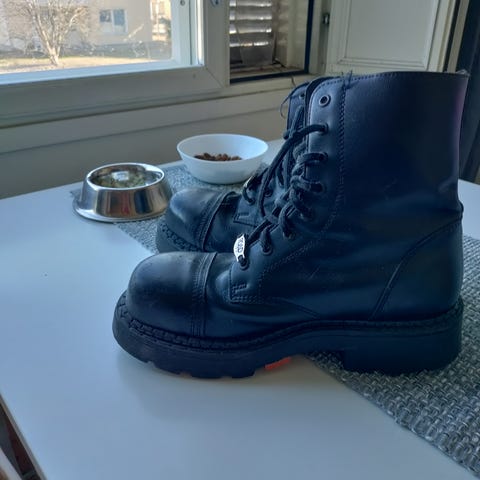 Kuin uudet, nahkaiset kesämaiharit/turvakengät (turvakärjelliset). Koko 41. Korkea varsi (20cm) ja kanta (4cm). Postituskulut ostajalle.