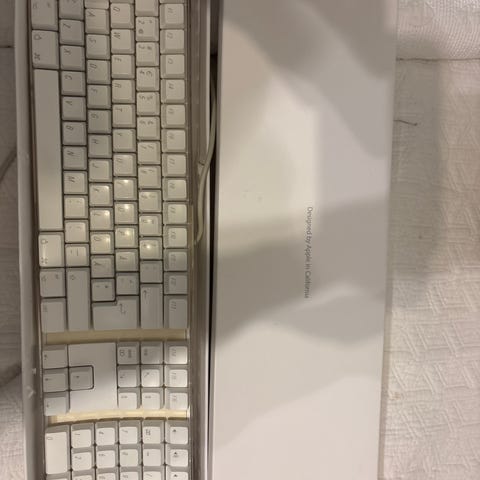 Applen näppäimistö 90-luvulta n. 2m kaapelilla jossa ADB liityntä, lisäksi ADB-liityntä esim. hiirelle. Siisti, hyväkuntoinen ja oikein toimiva. Värikin säilynyt eikä kellastunut.
