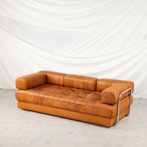 Kunto: Hyvä vintagekunto ja kevyttä ajan patinaa. Nahassa on ajan patinaa, mutta nahat ovat ehjät. Istuintyynyn vetoketjut on ommeltu umpeen. Selkänojien ja käsinojien vetoketjut eivät ole ommeltu umpeen. Pyydä tarkemmat kuvat, jos haluat varmistaa yksityiskohdat.