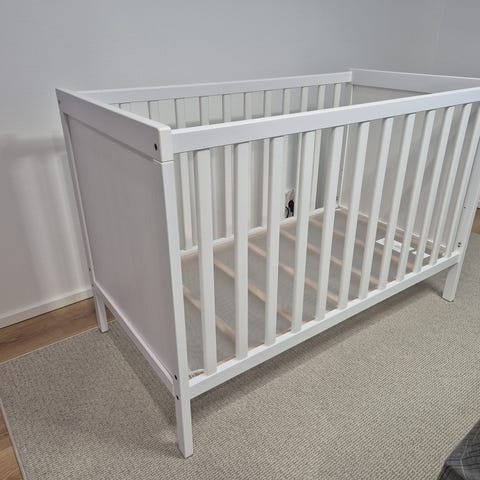 Sängyn mukana allergiaystävällinen lähes käyttämätön Nird Baby patja sekä Famillon sijauspatja.
