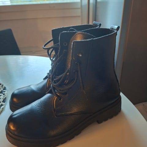 Kotimainen, pintanahkainen kenkä karkeakuvioisella pohjalla.