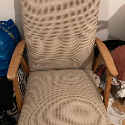 Tästä retro ihana 60- luvun nojatuoli, oranssilla verhoilukankaalla päällystetty muutama kuukausi sitten. Tarjoa