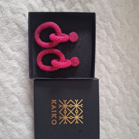 Kaiko Bahi korvakorut. Materiaalina Messinki ja Howliitti-kivi. Korvakoruja on käytetty kerran, joten ovat kuin uudet.