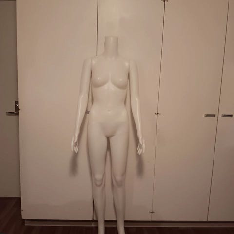 Myydään lasikuituinen mallinukke joka on noin 165 cm korkea. Vasen rinta jonkin verran kulunut, mutta muuten hyvän kuntoinen.