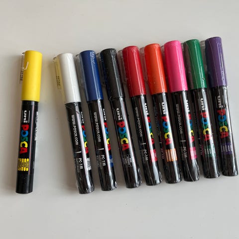 Muutaman kerran kaikkia kokeiltu. Soveltuu paperille, keramiikalle, lasille, metallille ja kankaalle.