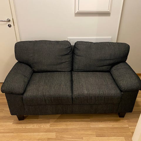 Myydään harmaa 2-istuttava sohva. Sohva on tukeva ja edelleen täysin käyttökelpoinen.