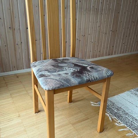 Kolme tuolia joista kaksi samanlaista, ja yhdellä erilainen selkänojan yläosa. Myydään 10€ yhteensä tai 5€/kpl