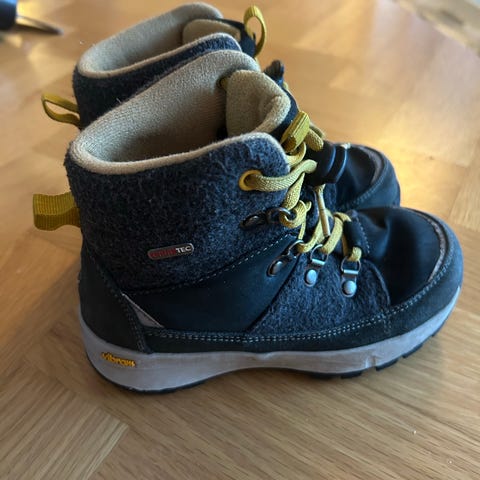 Uutena viime talvena ostetut Reima Pyrytys talvikengät koossa 29. Väri tumma siniharmaa. Pinta-/hiekkalikaa (nyt vain kevyesti pyyhitty), tummentumaa karvavuoressa. Sisäpohjalliset puuttuu, koska alkuperäiset rullautui eivätkä pysy enää paikallaan.